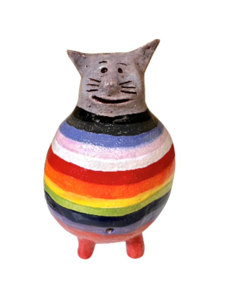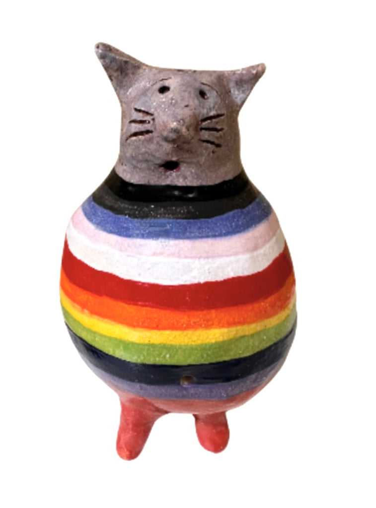 Hand formed sculpture, decorated in progressive queer flag colours.