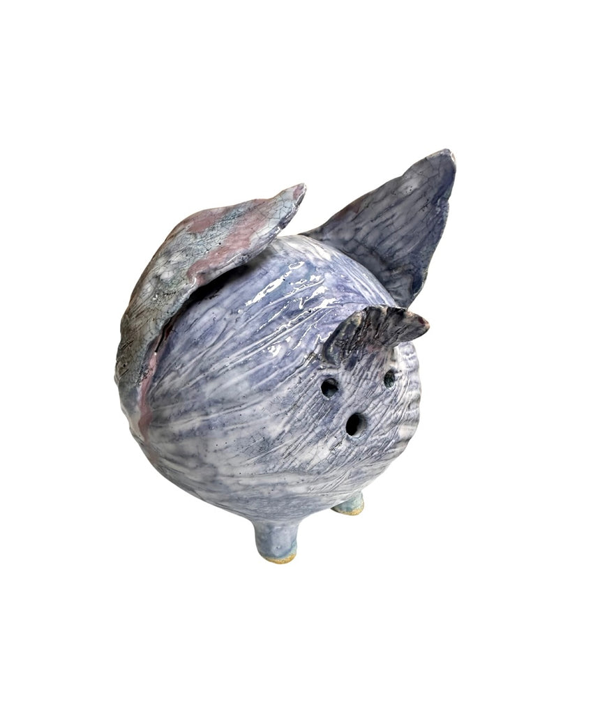 Hand formed sculpture with stylised glaze finishes.